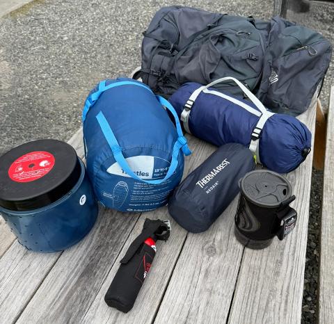 PKG Backcountry 2P -3Per Tent, 2/ 20 deg SleepBags/ 2 U/L Sleep Pads/2 Backpacks w/Rain Cover, 1 Jet Boil Cook/Stove, Bear Keg & Bear Spray, 2 sets Trekking Pole (2 People) (See all add ons available)