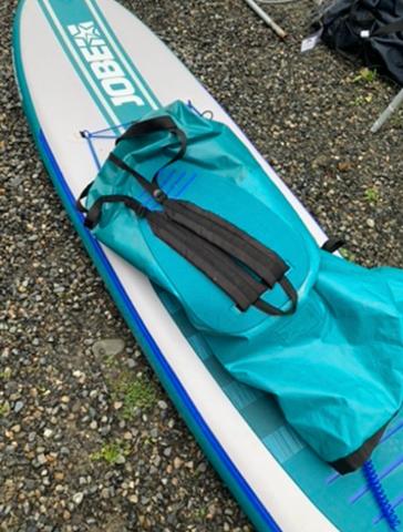 - High-pressure, dual-action hand pump 11' translucent ankle coil leash Cell-phone dry bag Repair kit Carry-all backpack